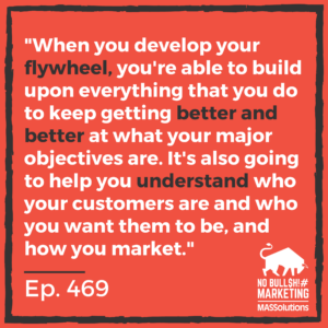 But the beauty of it is we can think in terms of a flywheel. And think from a marketing strategy standpoint because a flywheel combines marketing and customer strategy with operational strategy and organizational strategy. So it’s the one thing that really does combine all those strategies. And part of the reason strategy, I’m going to divert a little bit here, but again, part of the strategy can be a lightning rod or cause stress or cynicism or frustration is because people don’t really understand that there is organizational strategy. How are we going to be built? What’s our structure going to be like? What type of leadership and management? And there’s financial strategy, how you’re going to price things and what you’re going to do and what your philosophy is. And then there is marketing strategy, which customers you want to target and who you want to reach, connect and engage with. So there’s multiple types of strategy. And most people just go yeah, I do strategy, we’re strategic, or we do strategy, we do marketing strategy. And that’s really just a tactic they’re discussing. But the flywheel was beautiful because when you develop your flywheel, you’re able to, first of all, have the way that your company is going to build upon everything that you do to keep getting better and better and better and better at what your major objectives are. It’s also going to help you to better understand who your customers are and who you want them to be, and how you market.