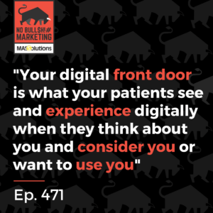 We have many examples of this. Multiple clients have had challenges with their call center. We were able to quickly look at their reports, look at their trends across the board from their patient journey. And we were able to see where the patient entered. Was it the website? Was it a phone call? Was it an app? And what happened when they entered and began their journey with you? How difficult was it for them to get a question answered, to reach someone they wanted to talk to, get an appointment scheduled? How well were you doing at reminding them about their appointments and texting them and keeping them in the flow of understanding that they were part of something, and they were going to benefit from coming to see you to reduce your no-show rate? How much have you incorporated telehealth if you are a physician provider? How much have you enhanced your virtual tour if you’re a senior living community? But all of these fall under the first step of systematically gathering insights from and about your patients from and about your employees, because now you’ll diagnose what the problems are, which are opportunities for you. I mentioned client after client after client, we’ve come back and said, here’s what we’ve learned about your patient experience. Here’s where there’s some bottlenecks in the patients trying to get scheduled, trying to reach someone, trying to figure out about billing, trying to schedule a tour, trying to learn more about your pricing, trying to get in to see someone for physical therapy, these trends are noticed. And we’re able to say this is a problem, here’s the way to turn it into an opportunity. But at the same time, you’re talking to patients and employees, and asking open-ended questions and tracking what you hear, and you’re seeing trends there as well. And those trends will tie to the other statistical things that you’re noticing from the reports that you’re gathering about your patient journey. And a lot of it ties to your digital front door. Your digital front door is what your patients see and experience digitally when they think about you and consider you or want to use you. Your digital front door is important because patients lack patience, and they want things their way, their time, through their medium. So that digital front door has to tell them what they can get and where. It tells them where they schedule and how they can do that on their phone. It shows them what their patient portal is and where it would be so they can find out the information that they need to find out about their past prescriptions or their past visits. It’s where they can get their wellness and health tips, all from that digital front door. So, step one is systematically gathering insights to identify the trends of both good things that you can tell in your story, and problems that you can turn into opportunities. That’s step one, systematically gather insights.