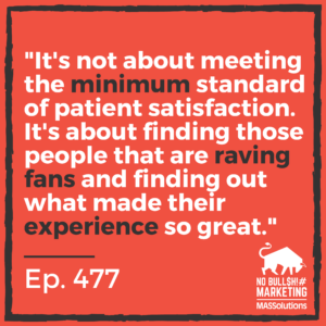 There’s a great book, If Disney Ran Your Hospital by Fred Lee if you’re on the hospital system side, the provider side, physicians hospital side. If Disney Ran Your Hospital by Fred Lee, check it out. One of the points of this book is that it’s not about satisfaction, it’s not about getting a four. Disney doesn’t look at how many fours out of five they get. What Disney looks at is the five out of five, that’s someone who’s loyal. That’s someone who you ‘wowed’ them. And so I think if we can shift the mindset on this patient satisfaction way of looking at things and the way we ask these questions, and there’s all kinds of lengthy patient surveys and there’s things that come out that you don’t even use, or you come up with a lot of 3.5s, 3.7s. It’s not so much about that meeting the minimum standard of patient satisfaction. It’s about finding those people that are the ones that are fans, raving fans, that have been wowed, and figuring out what made that experience so great for them. Because what happens and what the studies have shown is that there are three things that patients, employees and providers all look at when they’re deciding whether to be loyal to that particular organization.