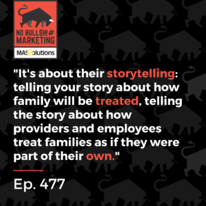 It’s also about their storytelling, telling a story about your wayfinding, how easy it is to get around, telling your story about your convenience, telling your story about how family members will be treated, telling your story about how employees stay and how they work in conjunction with providers, telling the story about how providers and employees treat patients and families as if they were part of their own family. These are all part of your patient-centered communication, your patient-centered marketing, your patient-centered storytelling, and the three ways to drive physician, employee and patient loyalty.