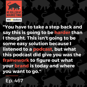 It’s the No Bullshit Marketing Show. I’m Dave Mastovich, CEO and founder of MASSolutions, the world’s only no bullshit marketing consultants. Someone reached out to me to ask a question, said,not sure if I need a rebrand or not.’ And I said, ‘tell me what’s going on.’ Because this is somewhat common, I get people asking me this all the time, and they said, ‘well, we’re not really sure. I’m new to the company, we’re not really sure how we’re perceived. And we’re not sure how it looks and sounds. And we’re not sure of this and that.’ And I hear this again and again. And I think this episode can focus on the importance of branding and storytelling and how you can figure out where you are and where you want to go.