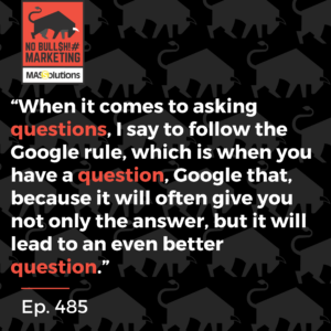 With a core value, at MASSolutions, we break it down and talk about the word ‘think.’ And we want everyone to use that as a core value. And the first part of think is think for yourself. When you look at the power of deep thinking, starting off by thinking for yourself, is about self-managing, self-management. One of the ways that I coach and mentor team members, when I talk about think for yourself and self-management, is I say, ‘Ask yourself open-ended questions to yourself. Ask yourself open ended questions like, ‘Why might my teammate, my peer be responding to me this way? Why is the client thinking this misperception about what we’re doing? Why is the client’s client not doing this behavior or action that we’re working on?’’ When you ask yourself open-ended questions and you begin to make that a part of your system and process on a daily basis – but on a hourly basis, minute basis throughout the day, continually asking yourself open-ended questions and pondering the answers to your open-ended questions – that’s part of self management. Another part of self-management and think for yourself, here at MASSolutions as a core value and it can help you is, having that thirst for knowledge. And a thirst for knowledge is not just words, a thirst for knowledge is not just saying, ‘I want to learn as much as I can about my position at Company A,’ where you work. But a thirst for knowledge is wanting to learn more about each of your clients and your clients’ clients, wanting to learn more about things, subjects, anything, just constantly wanting to ask questions, listen and learn. That’s the thirst for knowledge that we want to be part of our culture here. But I would encourage you, as a loyal No BSer watching this show, listening to the audio, that if you can have that thirst for knowledge, and it’s a true thirst for knowledge, that enables you to think for yourself.