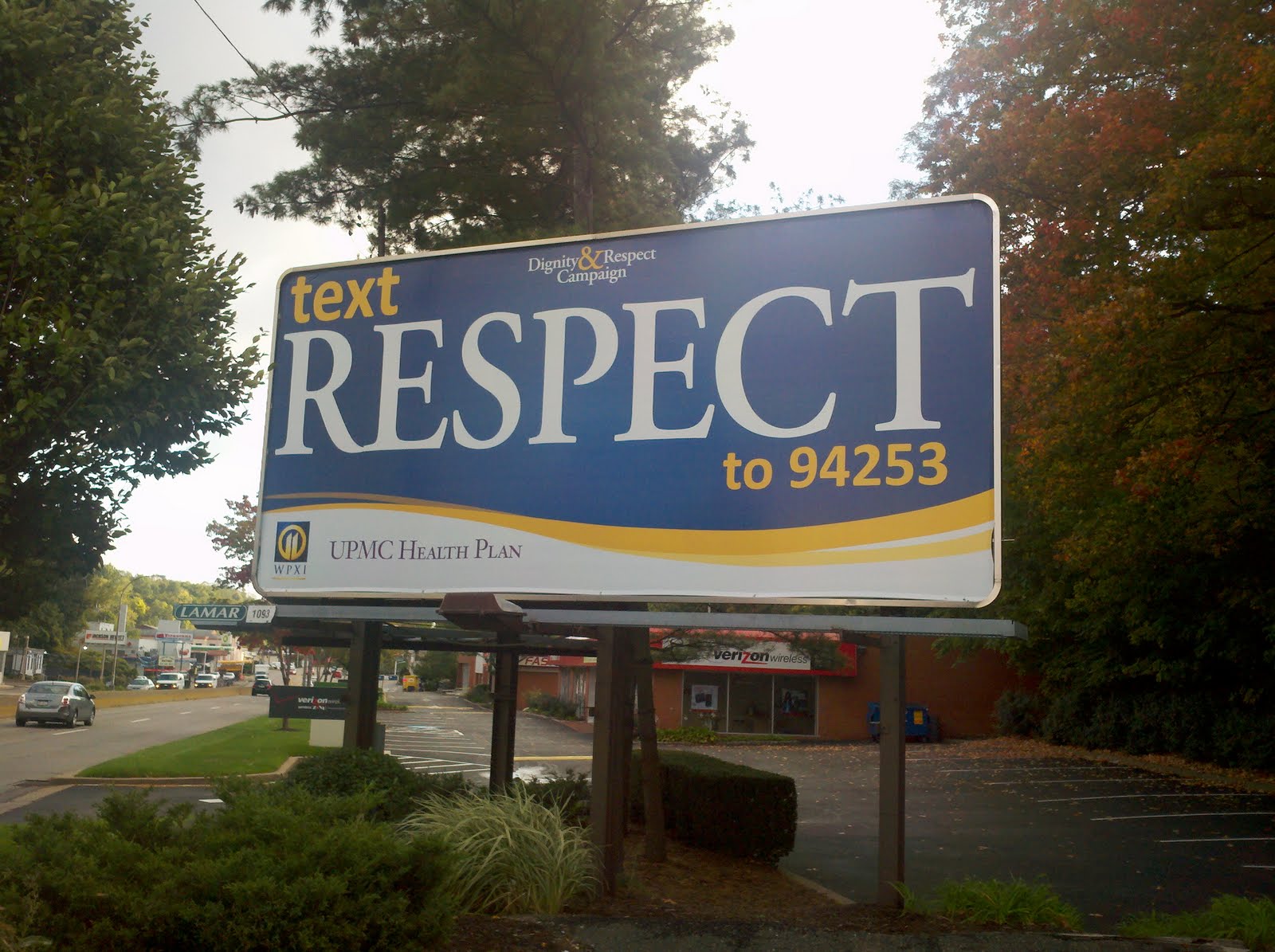 After you text “Respect,” you’ll receive a text from UPMC about their Dignity + Respect Pledge: I will treat everyone with Dignity and Respect. Reply YES + zip to agree.